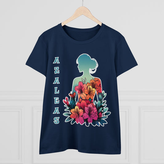 Azalea Whispers: Woman in Bloom, Midweight Cotton Tee