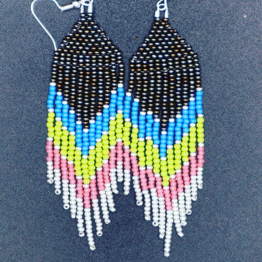 Chevron Beaded Metallic Earrings 2pc