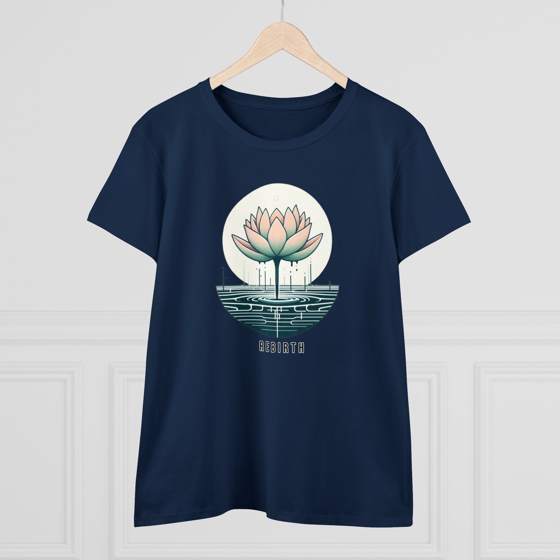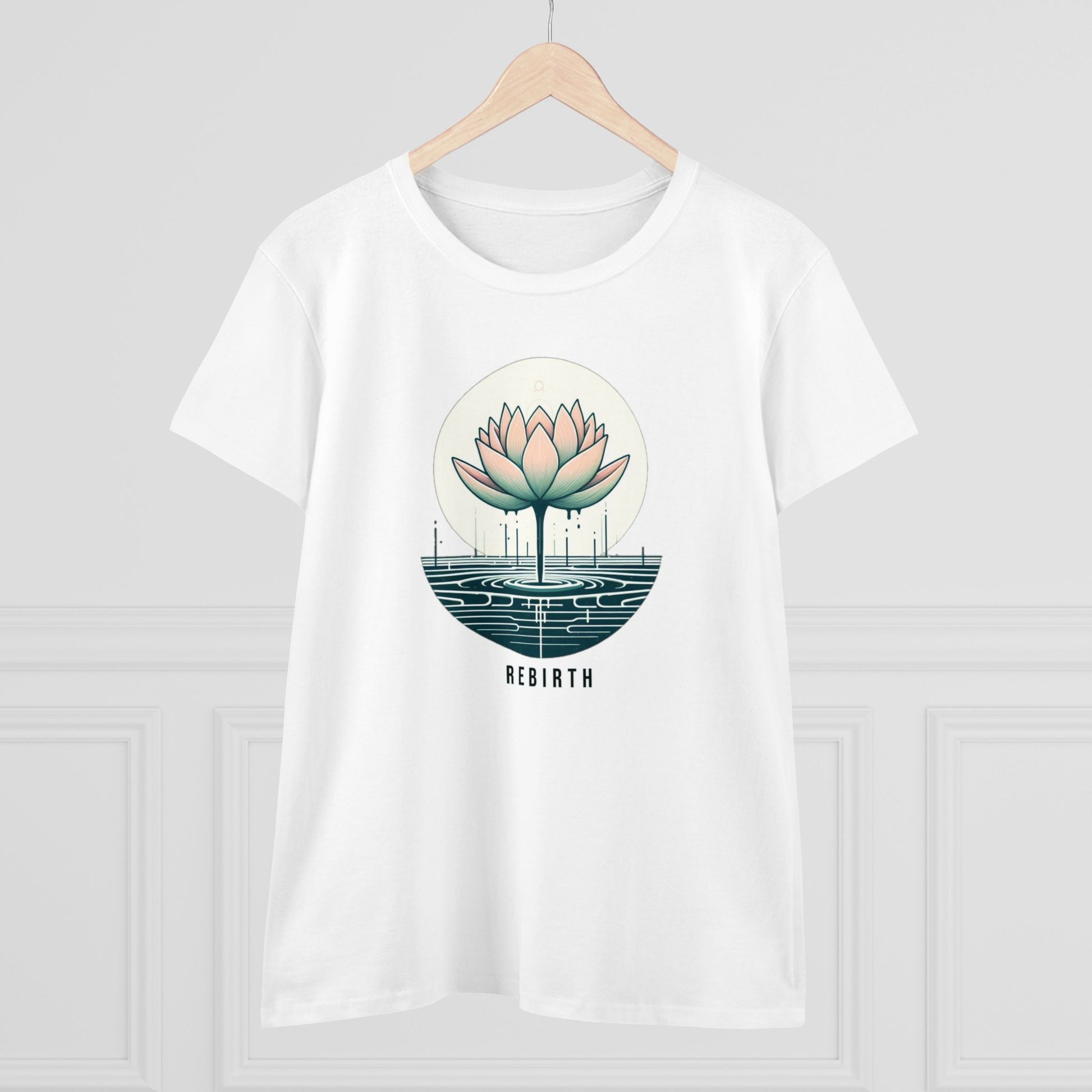 Blossoming Beauty, Women's Cotton Graphic T-Shirt with Lotus Flower Embrace and Rebirth Text