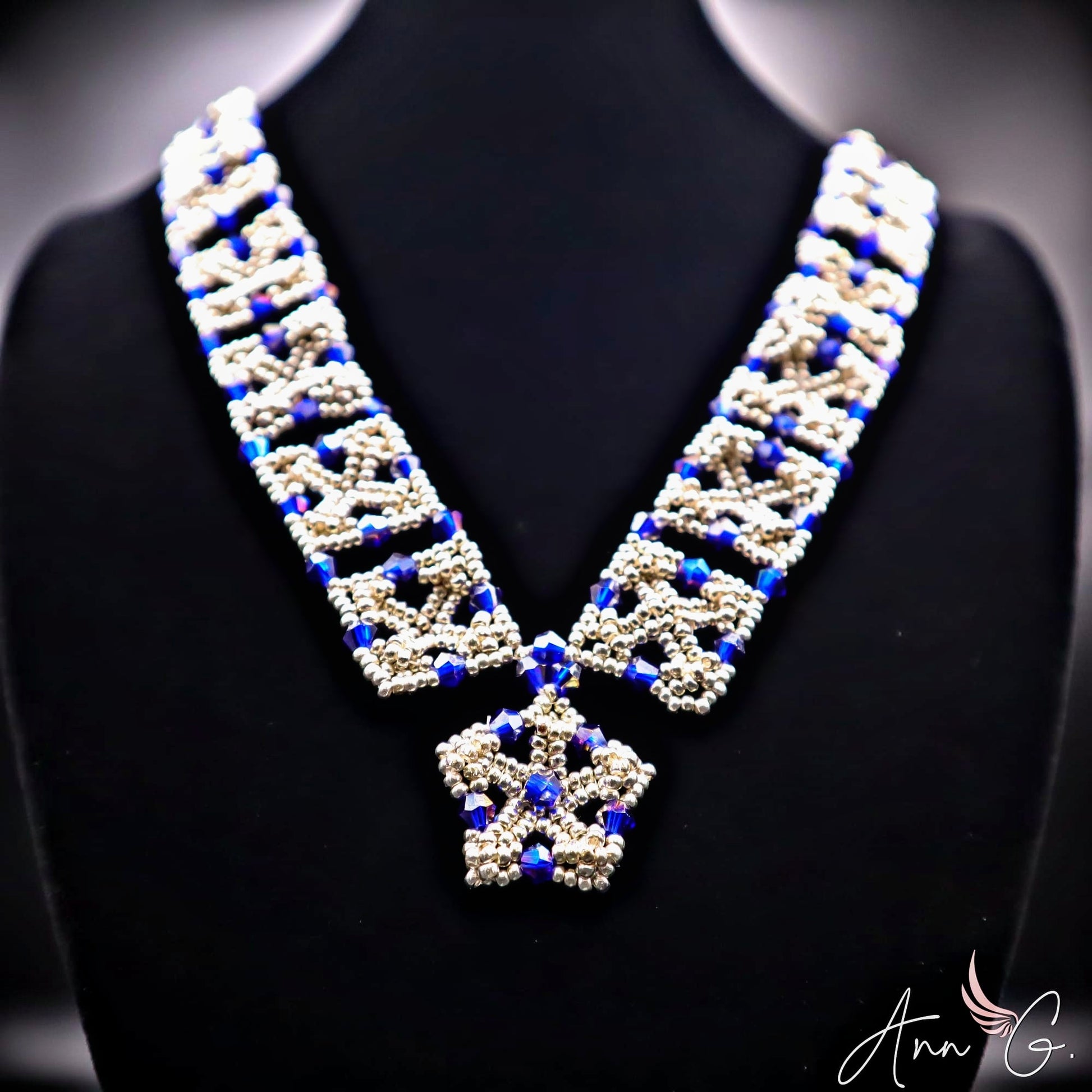 These beautiful necklace are truly amazing in person designs with sliver and crystal miyuki seed beads