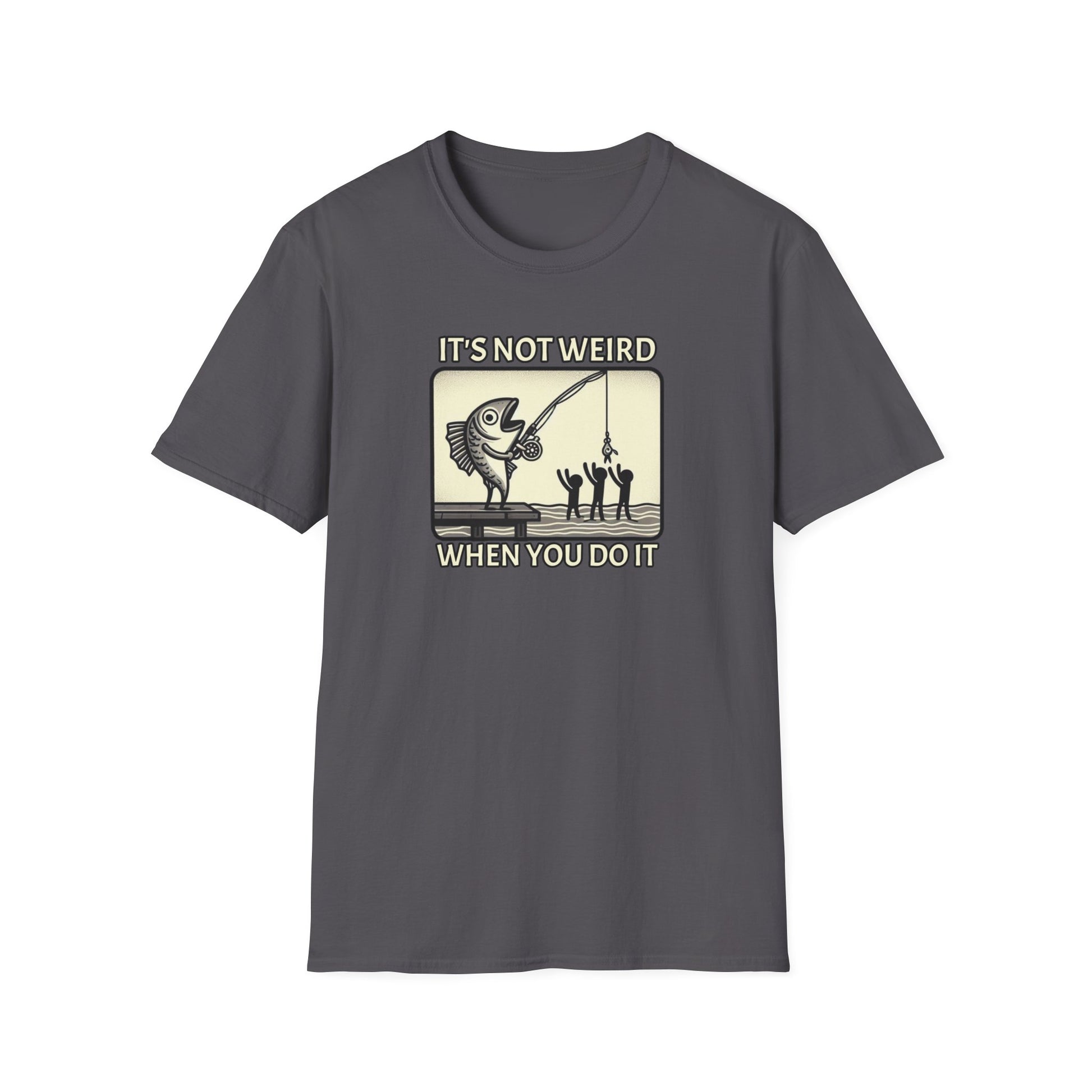 Dive into the depths of irony with our "Fish Out of Water" graphic tee, where whimsy meets wit in a surreal twist. Crafted from premium cotton, this tee ensures a soft embrace against your skin, blending comfort with a touch of humor. The amusing graphic featuring a fish fishing for humans prompts a chuckle, accompanied by the caption, "It's not weird when you do it?" Revel in the quality of our material as you make a statement that's as comfortable as it is clever. Embrace the unexpected, wear the irony, and let this tee redefine your casual wardrobe with its premium cotton goodness and quirky design.