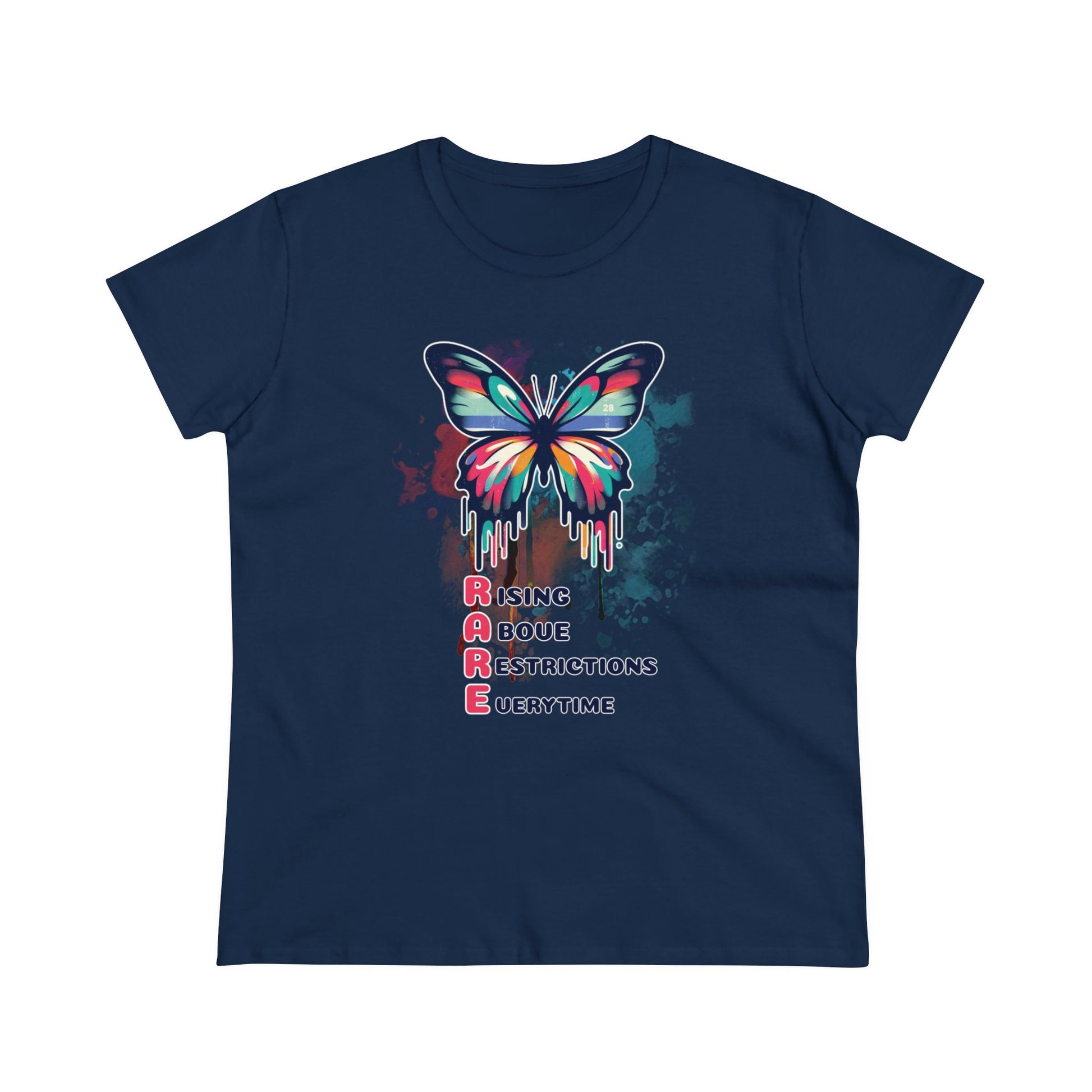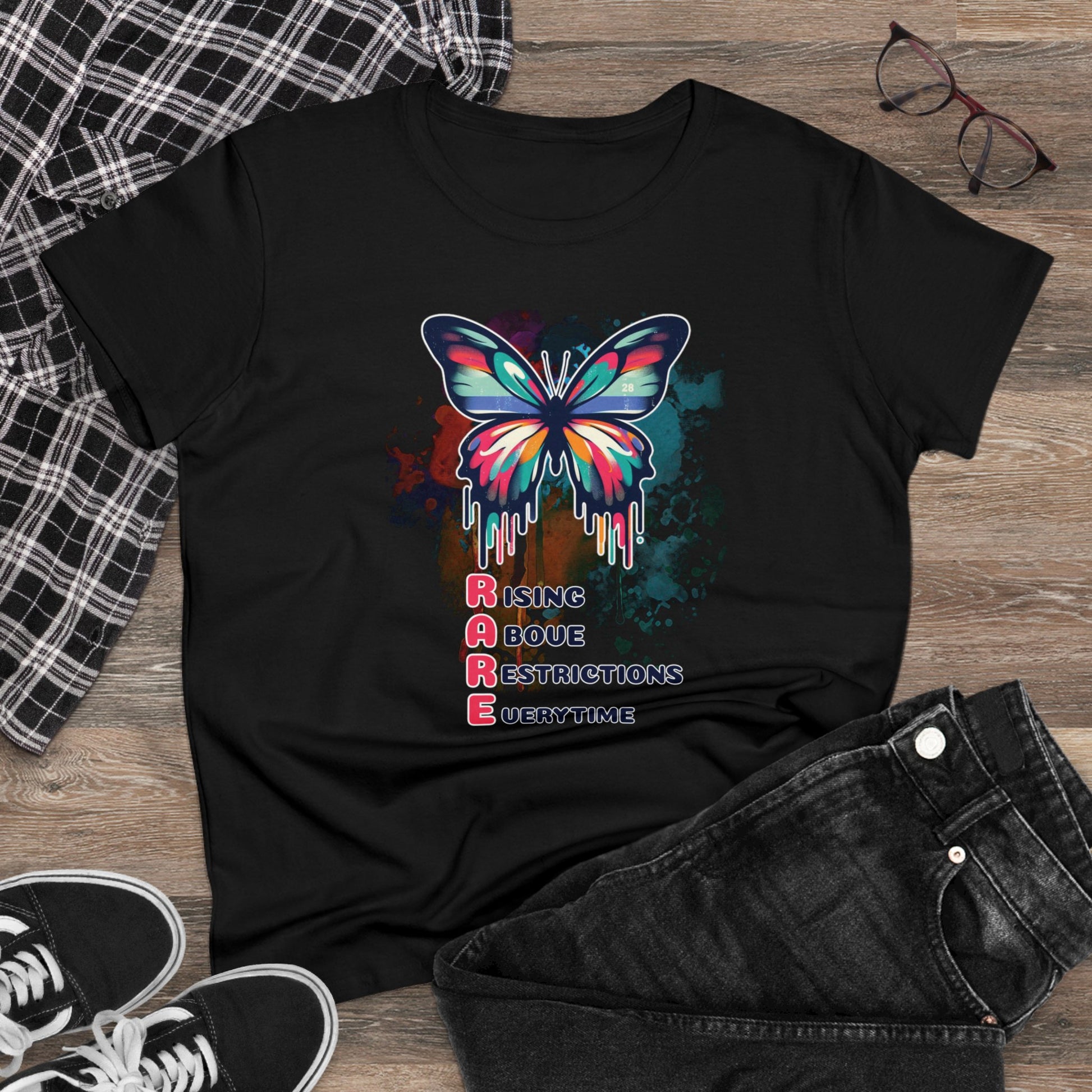 Fluttering Freedom: Women's Graphic T - RARE - Rising Above Restrictions Every Time