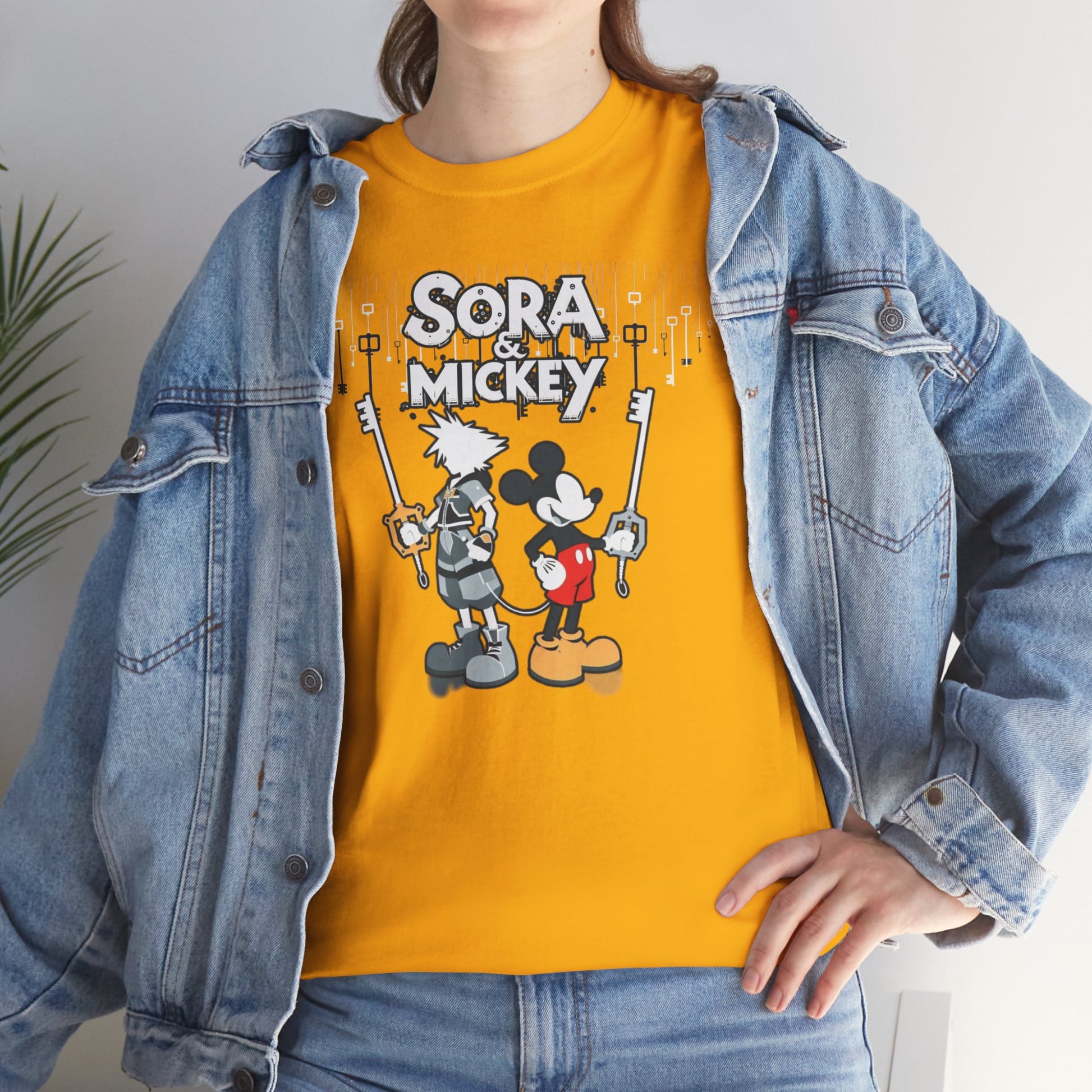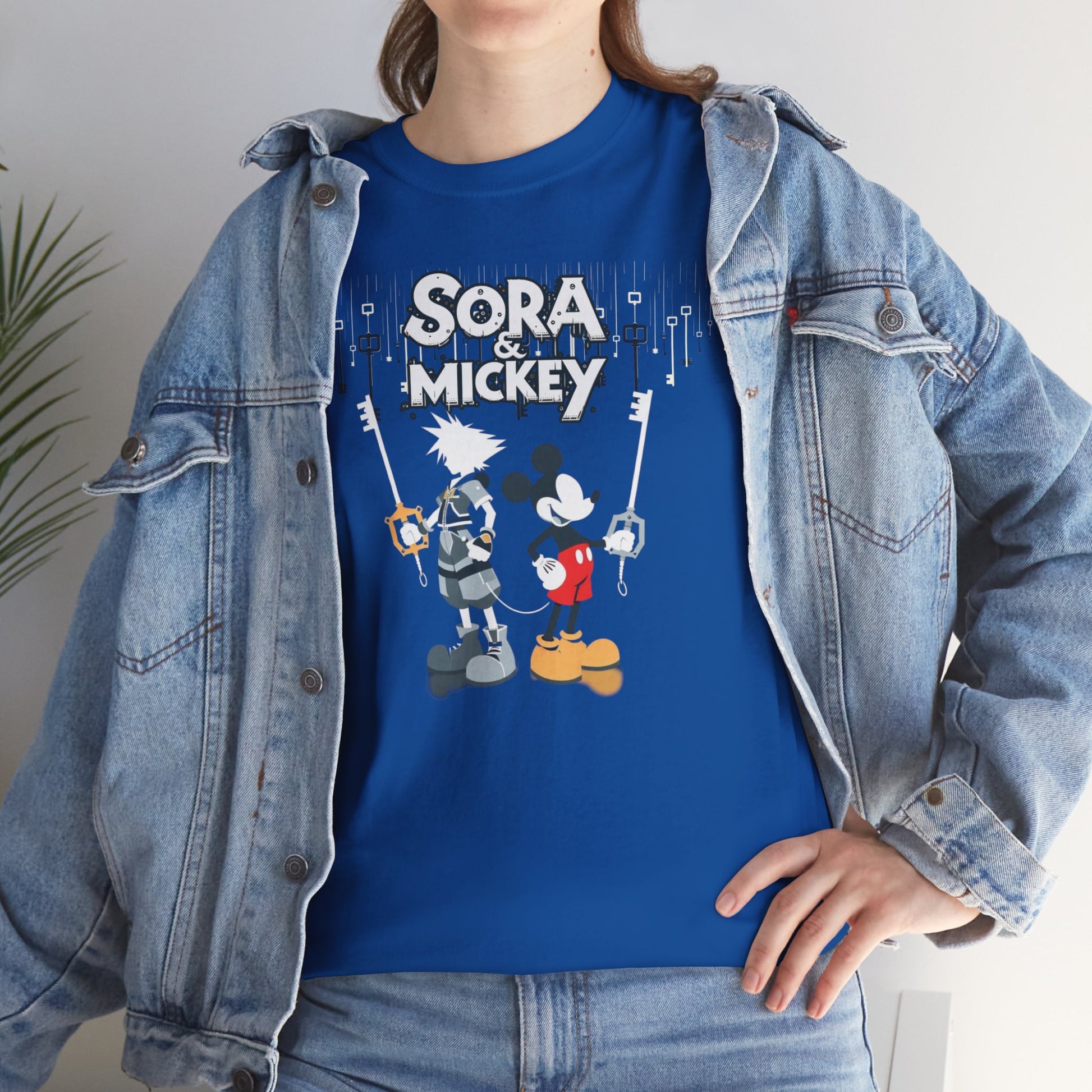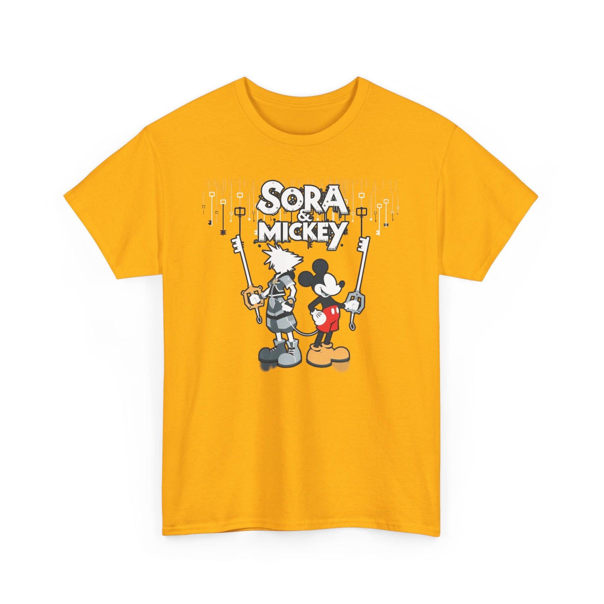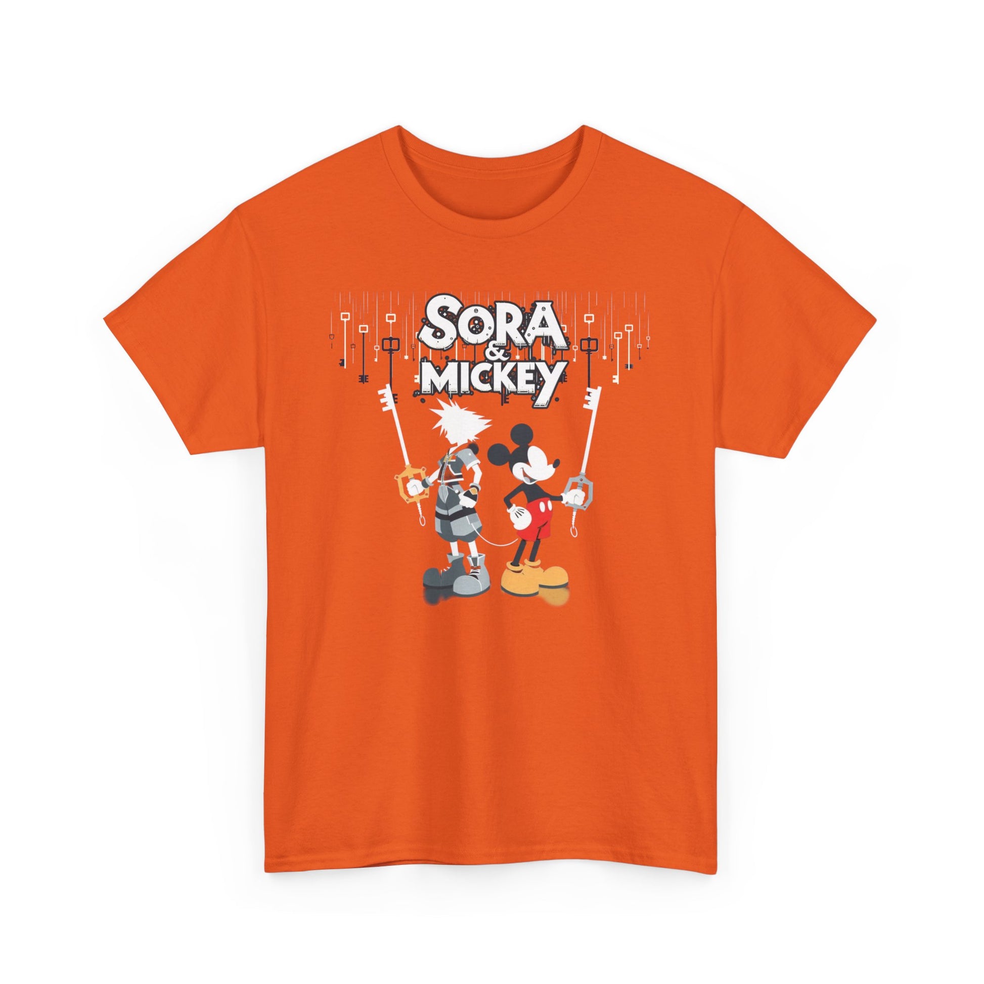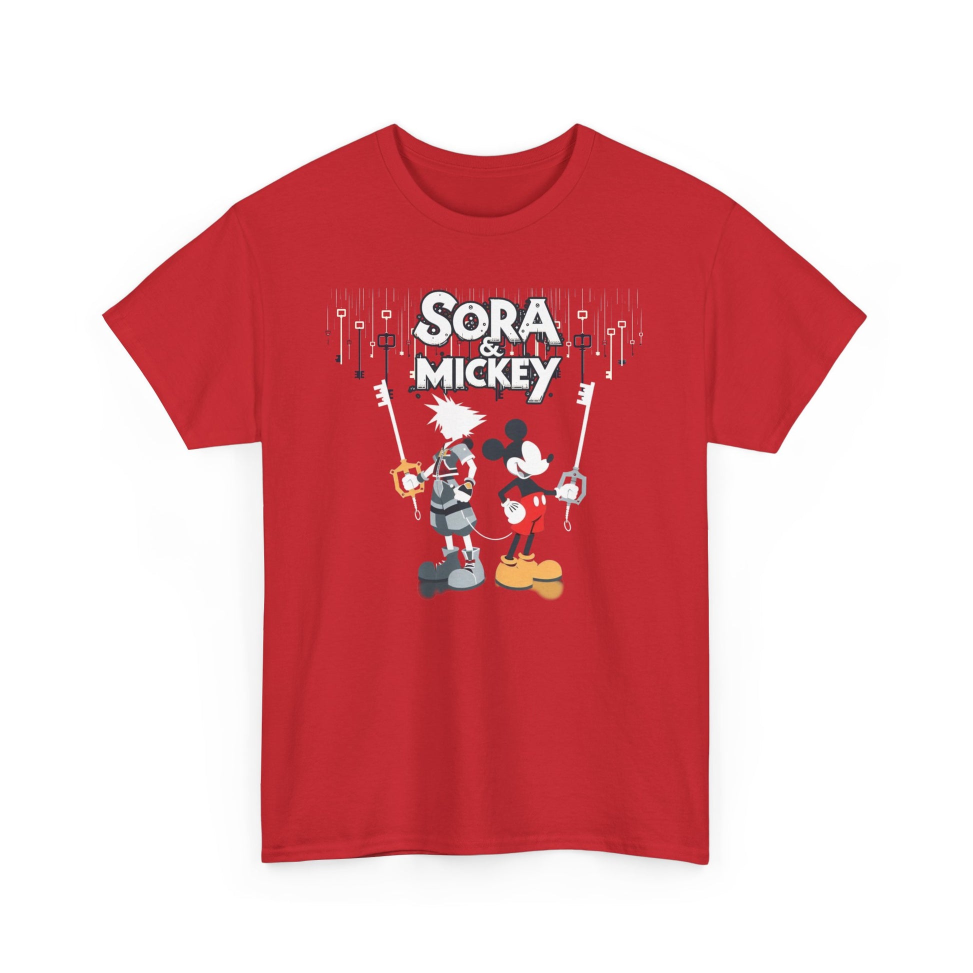 Featuring the dynamic duo of Sora and Mickey standing back to back, wielding their keyblades with unmatched finesse, this tee is pure action-packed awesomeness. Crafted for both comfort and style, it's perfect for unleashing your inner hero or heroine in any realm. 💪