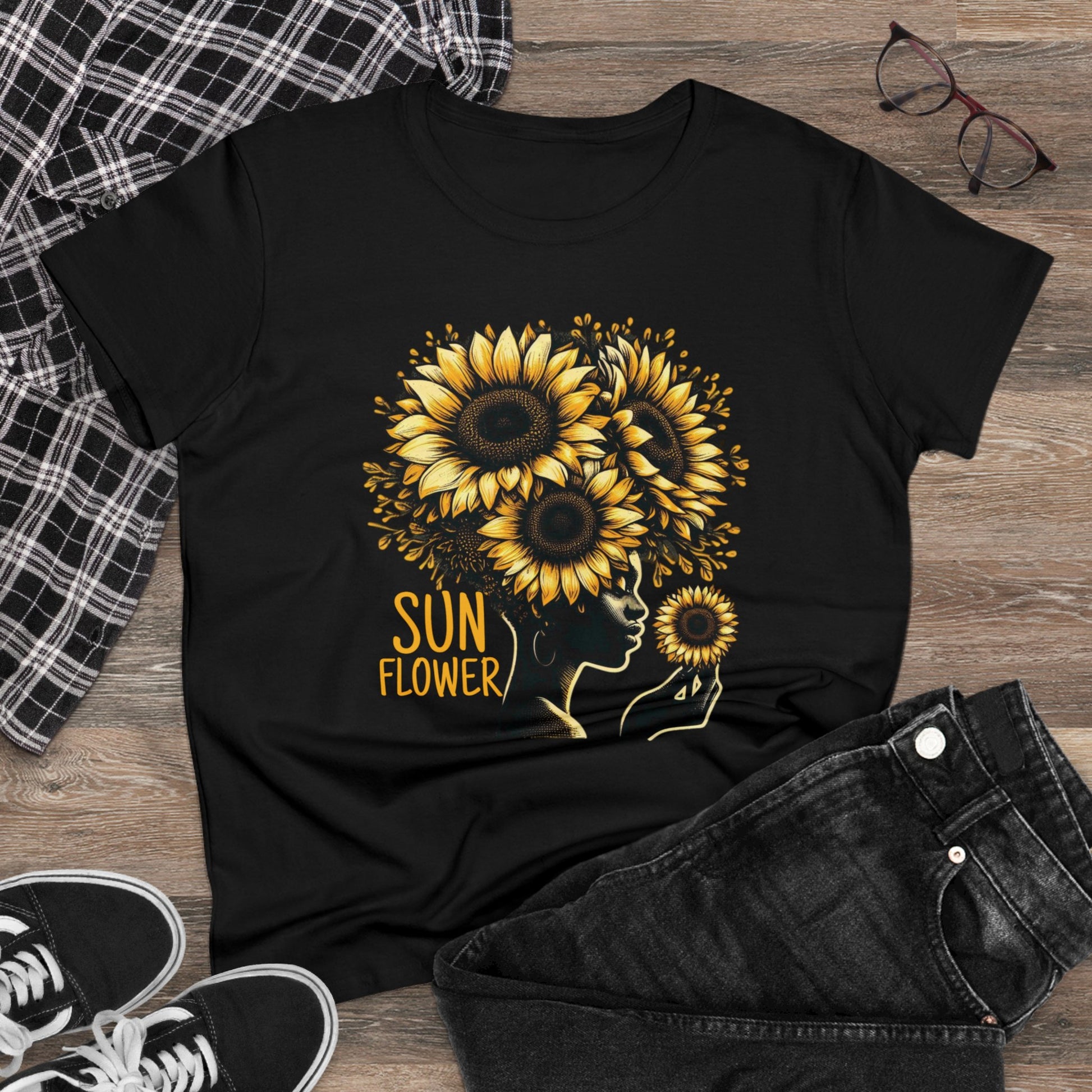Radiant Majesty: Sunflower Goddess Midweight Cotton Tee