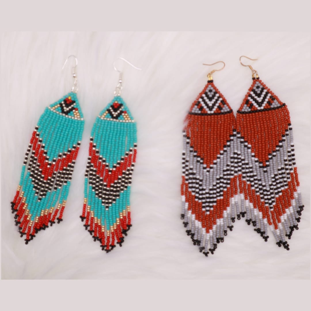 Seed Bead Fringe Earrings ⋄ Indian Earrings ⋄ Bohemian Beaded Fringe Earrings ⋄ Handmade Boho Dangle Earrings ⋄ Long Beaded Tribal Earrings