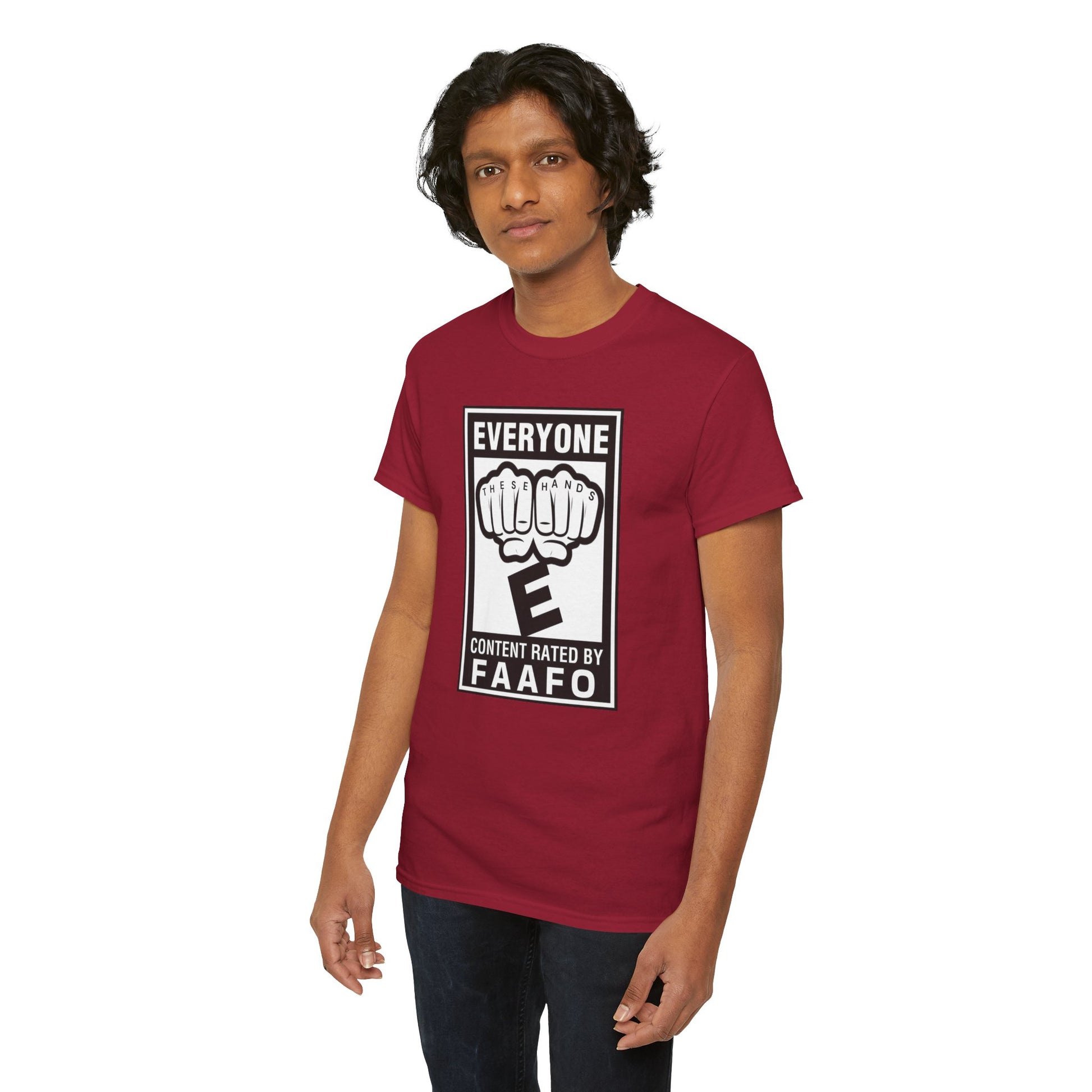 The Great Equalizer, These hands rated E for everyone Unisex Heavy Cotton Tee