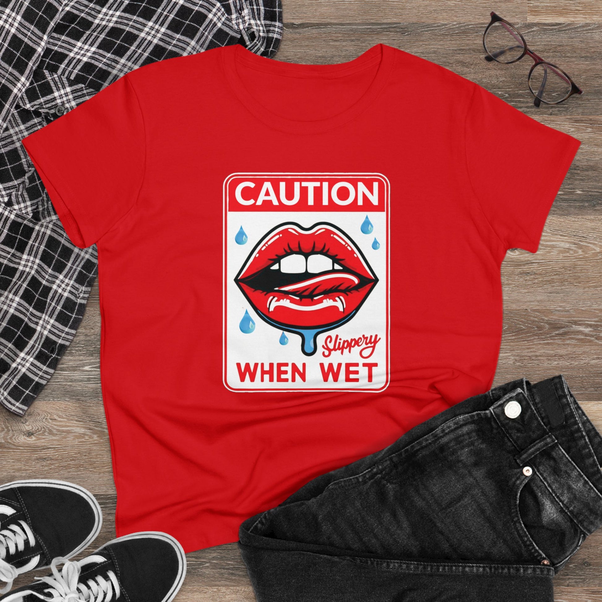 Dive into laughter with our "Wet & Witty" graphic tee for women, where adult humor meets a splash of bold style. Crafted from premium cotton, this tee ensures not only a soft touch but also a playful statement that embraces the unexpected. The caption "Slippery When Wet" adds a cheeky twist to your wardrobe, creating a splash zone of humor and comfort. Wear this tee proudly, and let the world know that your sense of humor is as bold as your fashion choices. It's more than just a garment; it's a conversation starter that adds a wet and witty flair to your everyday look. Get ready to make a statement and keep the laughter flowing!